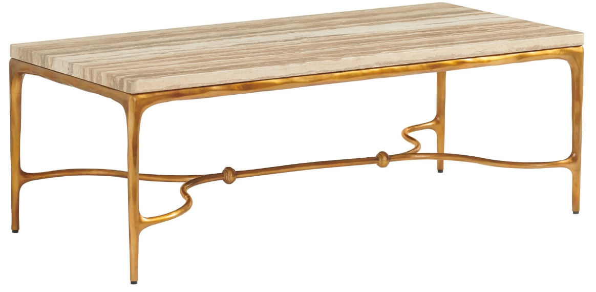 The Menlo Park cocktail table features hammered and hand-wrought metal bases in a maritime brass finish over silver leaf. Exotic tiger brown travertine tops add exceptional interest, with natural vein patterns that are unique to each piece.Read More