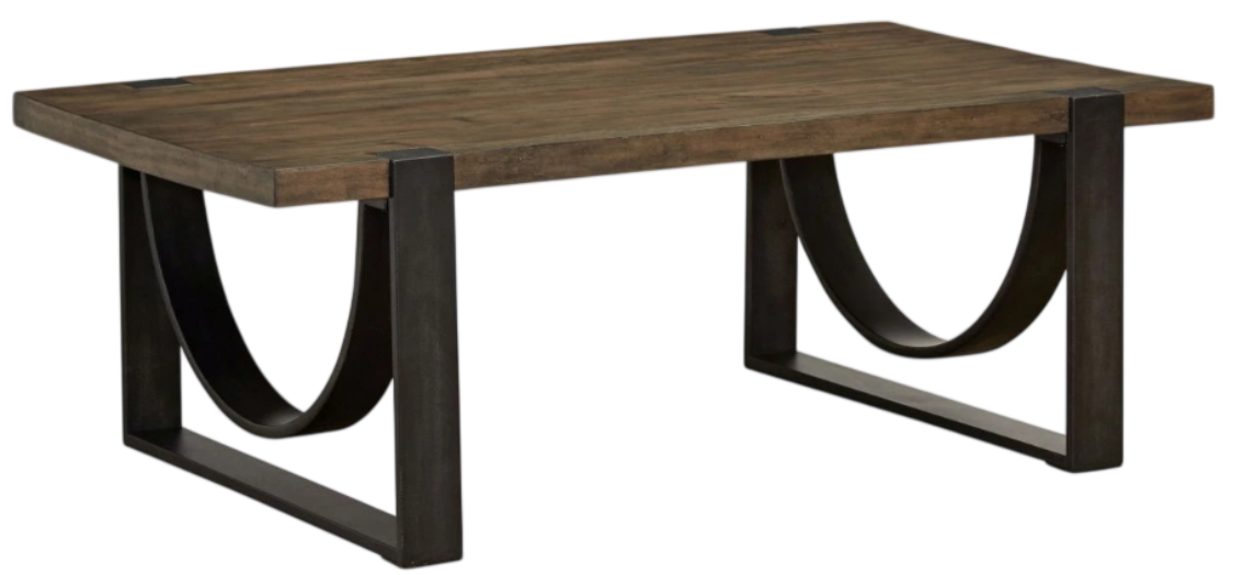 With echoes of equestrian inspired fashion, Bowden extends rustic hospitality with upscale appeal. Distressed iron has been artfully forged into a stirrup like ‘U’ shape and rests inside squared bases to uniquely support aged looking Rustic Honey wood tops on the rectangular end table, cocktail table and sofa table. Mirror image interlocking ‘U’s’ create the exceptionally striking round accent table base to complete a great room with that perfect accessory piece.Read More