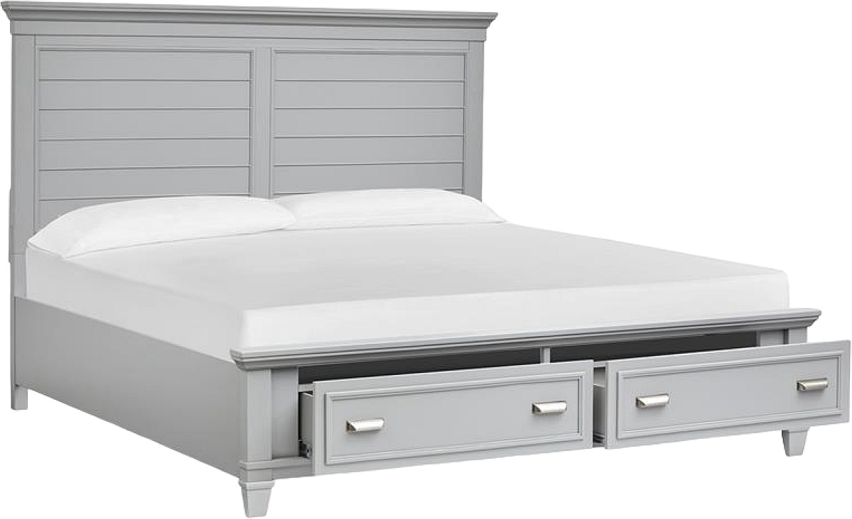 The charming Charleston bedroom collection provides the foundation for a dreamy bedroom. With clean shapes and crisp lines, its fresh transitional aesthetic can be styled to complement cottage, coastal or modern farmhouse décor. A louvered design adds classic character and visual appeal to the panel headboard and door panels.Read More