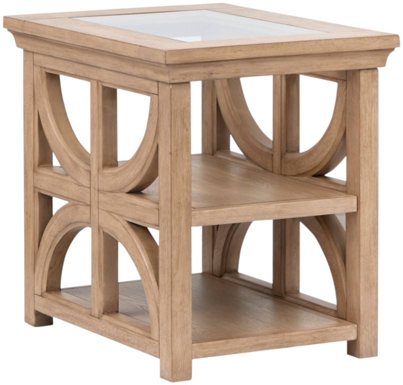 The Coventry rectangular shelf end table offers functional style with its beige finish and glass center top. Measuring 20"W x 26"D x 24"H, it features two shelves for added storage or display. Its clean design and airy look make it a versatile accent for contemporary or casual interiors.Read More