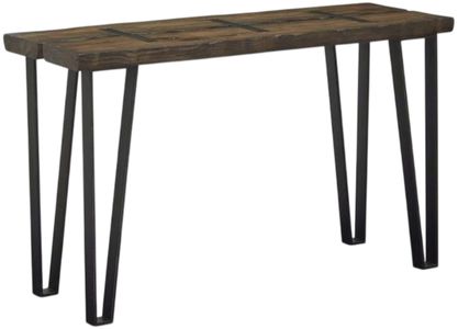 Magnussen® Home sofa table featuring a sawmill finish and galvanized steel accents.Read More