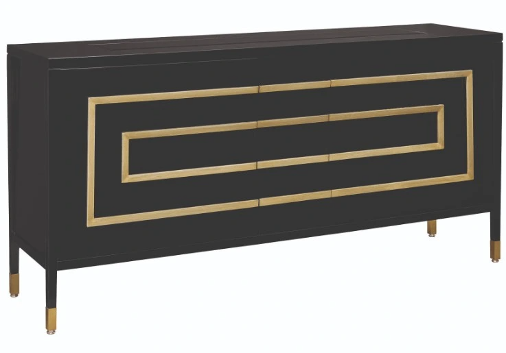 The Maitland-Smith® Lyric Caviar Credenza is a luxurious storage piece crafted from mahogany wood and wrapped in mahogany veneer. It features a 5mm black tinted beveled glass top and is finished in Caviar. The credenza is outfitted with Cashmere Gold stainless steel ferules and trim.Read More