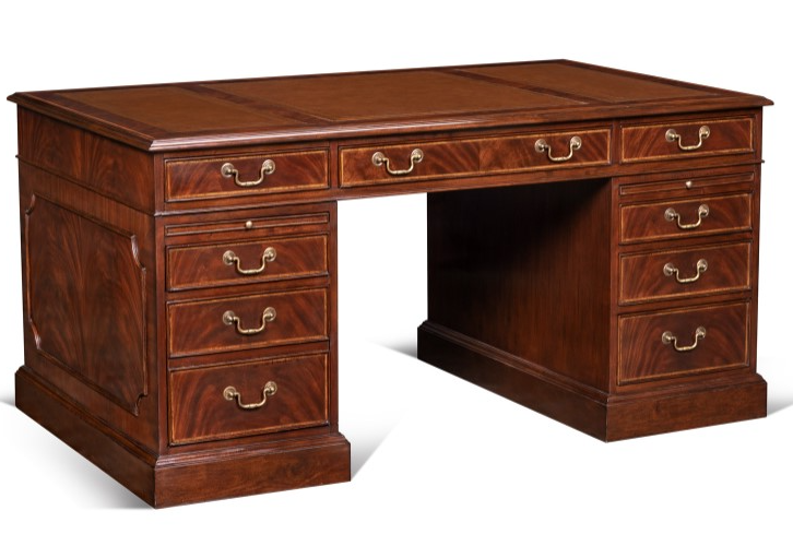 Accent your living area with the Roosevelt Desk. Featuring a fine inlaid banding and Antique Brown Leather top, Brass hardware, and right side file drawer. Add this desk to your living room decor and elevate the look of your space.Read More