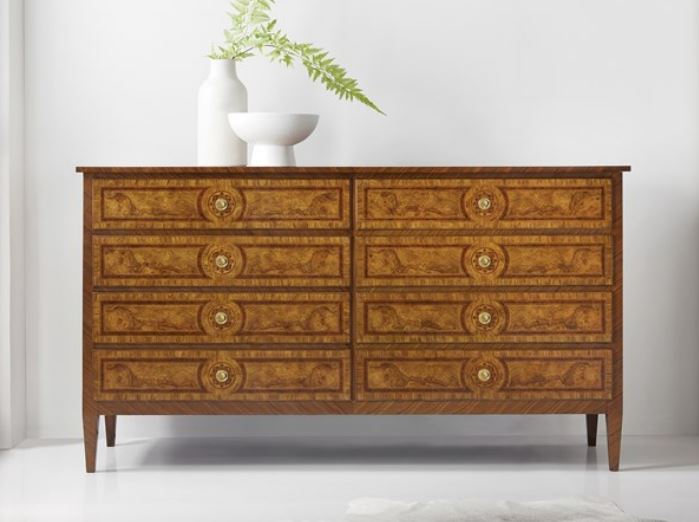 Accent your bedroom with this Bezier Dresser from Somerset Bay Home. Shown in French walnut and olive ashe burl finish, this dresser has 8 drawers giving you ample space for your storage needs. Incorporate this piece into your bedroom decor to give your home an eye-catching update.Read More