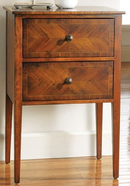 Craftsmen use state-of-the-art techniques to produce the timeless soft Somerset Bat patina. Their skills can further be seen in the distressing, dry-brushing and antiquing that shapes the character of each piece of handcrafted furniture. And a closer inspection will reveal drawers constructed of rrenewable, plantation grown mahogany and made with traditional dovetail joints.