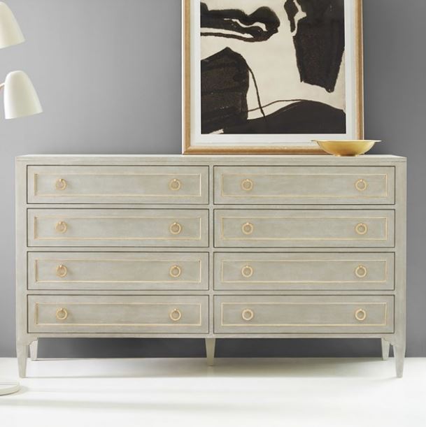 Accent your bedroom with the Gustavian Dresser from Somerset Bay Home. Shown in antique grey finish, this dresser has 8 drawers giving you ample space for your storage needs. Incorporate this piece into your bedroom decor to give your home an eye-catching update.Read More