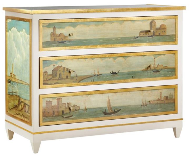 This chest from Somerset Bay Home features 3 drawers with gold leaf detailing and hand painted venetian scene. this chest will give an ample space for your everyday storage needsRead More