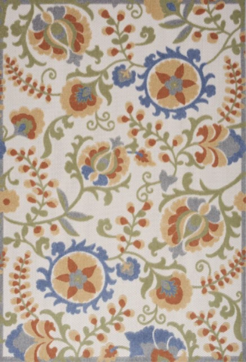 The bold, swirling vines and flowers of this Aloha outdoor rug bring a stunning pop of pattern to your patio, porch, deck, or swanked out yard. A high-low weave, presented in soft shades of blue, yellow, green, and red. combines textural patterns with an intricately woven base for exceptional look and feel.Read More