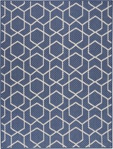 Sleek and modern, this navy blue geometric outdoor rug from the Horizon Collection offers a contemporary take on classic design. The eye-catching pattern effortlessly complements a variety of settings from urban balconies to cozy living rooms while adding depth and visual appeal.Read More