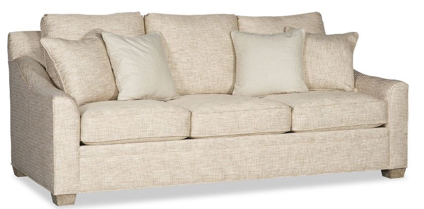 Our 35 sofa is known as a Bridgewater style, meaning that it has low, shaped arms that are set back slightly from the seat cushions. It’s one of our top 10 frames and maybe that’s because the loose back and seat cushions provide just the right amount of ease for relaxation. That’s a lot of talk and we haven’t even gotten to all of the customized options – hence the name “Choices”. Two seat depths, custom lengths, eleven arm designs, three back styles, skirt or two leg bases, three nail patterns, and a slipcover option are available to create your original sofa.