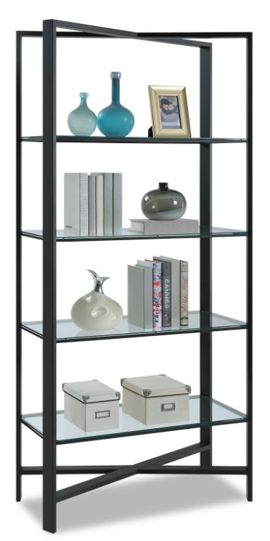 The Philip Reinisch Co. Halo X-Cetera Bookcase features 4 lay-on glass shelves and can be used as a room divider shown in champlain midnight black, this will give space for your everyday storage needs.Read More