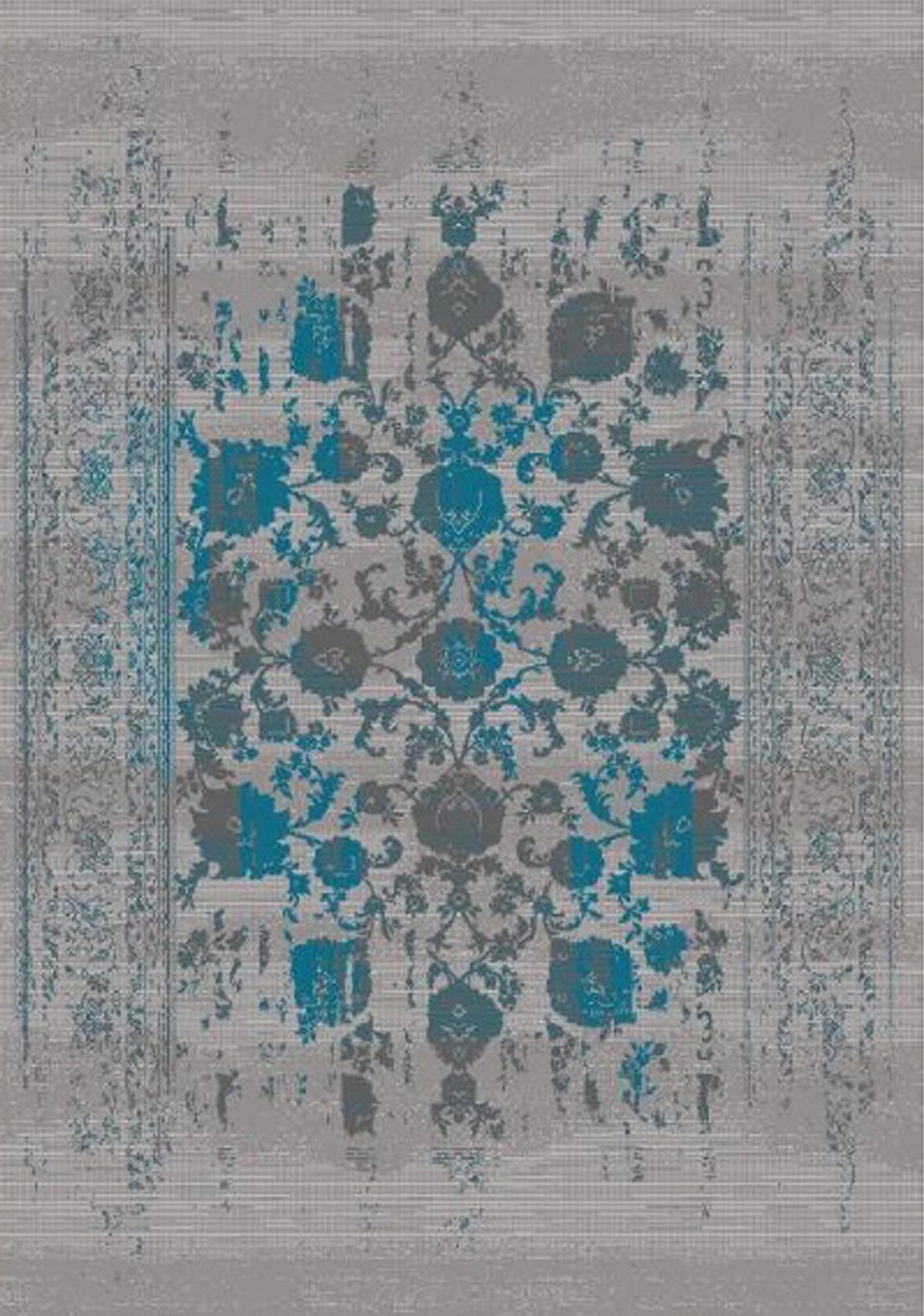 Lovely floor rug with a design featuring grey & blue tones.Read More
