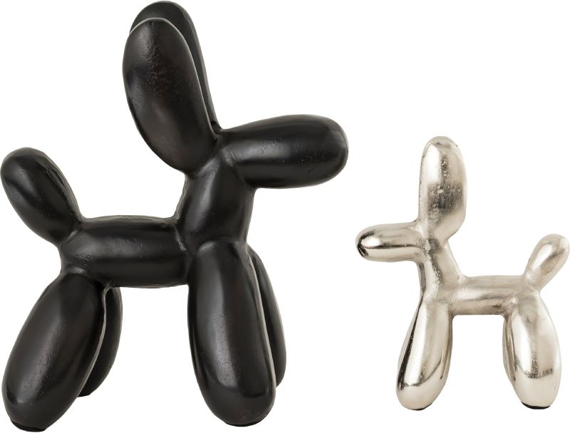 Pin the Pop Art template of this collection of two dog statues to the inspiration board of your interior. The air-filled aluminum form, finished in bronze and raw nickel, gives each pup an inflated appearance reminiscent of animals from birthday party balloons. A must have addition for fans of modern art, the metal dog figurines are ready to play in the home on shelves and tabletops.
