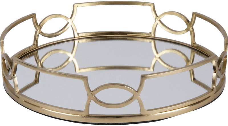This Antique Brass tray from the Belroy's collection makes this gorgeous decorative tray the ideal element for any table. With it's unique features, this tray is made of Iron with a mirror top.