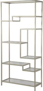 The Renwil® Claro Antique Silver Bookcase features Iron Frame with Glass Shelves.Read More