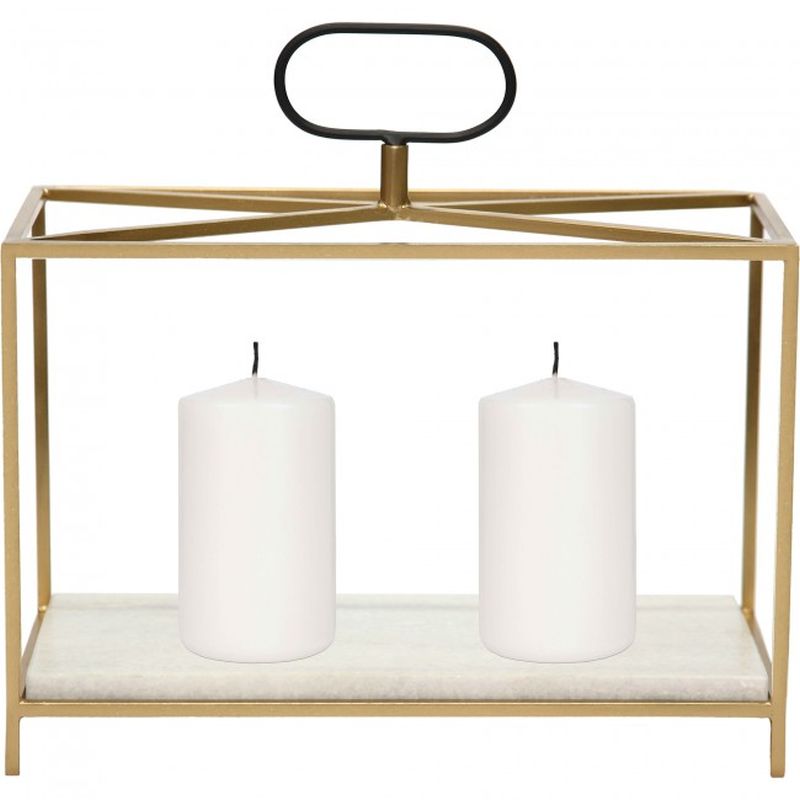 This glamorous Gold candle holder from the Flye collection can be fused into your decor as a centerpiece or simply display it anywhere in any room. This candle features a White marble base, Gold iron, and Black Powder coated handle.