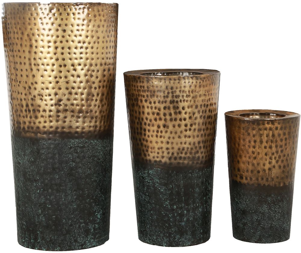 Set of 3 Rustic Gold and Patina Outdoor Planters