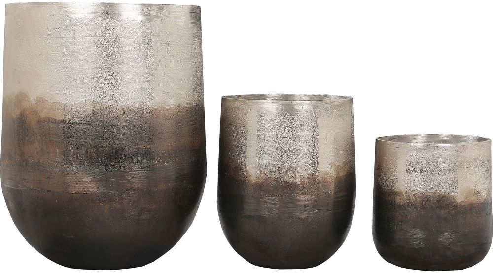 Set of 3 Pewter and Copper Outdoor Vases