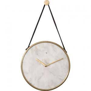 This White Marble wall clock from the Livenna's Collection can be fused into your decor and can be hung anywhere, in any room. This wall clock features a Faux Tan leather strap, and requires 1x AA battery.Battery not inlcuded.
