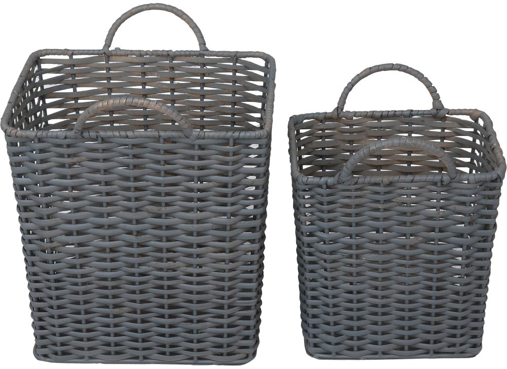 These Dark Gray Planter Baskets from the Neran's collection can be used for planting your favorite plants. Comes in a set of 2. Made of Ratten and finished in a nice Dark Gray. These planter baskets have to accessible handles to help you move them around.