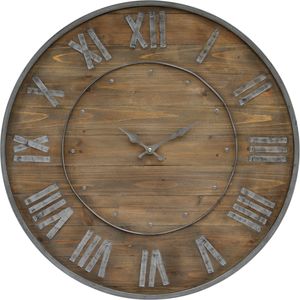 This Natural Wood finish wall clock from the Teatime's Collection can be simply hung in any room. This wall clock features Roman Numerals in a Antique Gray finish.