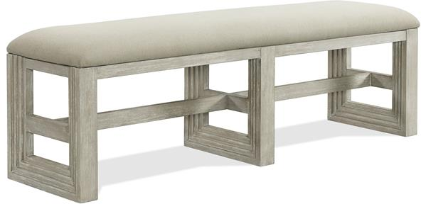 The Riverside Furniture upholstered dining bench is a piece from the Cascade Collection. This cascade dining bench is constructed of hardwood solid with a dovetail finish and is upholstered with a performance polyester fabric.Read More