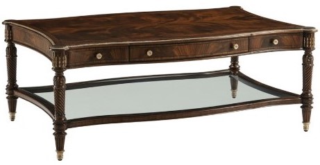 A dignified take on a traditional classic, this handmade cocktail table is designed with captivating serpentine edges decorated using only the finest brass details. A banded frieze drawer is partnered with an elegantly fluted top over spiraled hand-twisted supports inspired by a sofa in the South Drawing Room of the Althorp House.Read More
