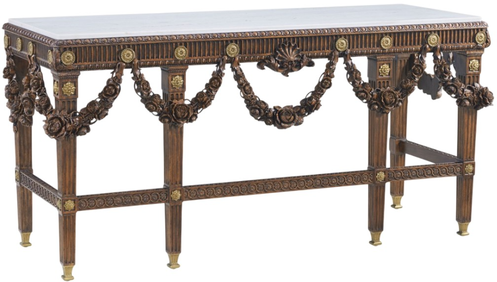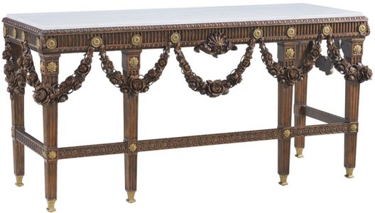 Althorp Living History collection expands upon its classic style with an exquisite use of figured walnut, drawing upon the historic designs found within the Althorp estate in England. Offered in a rich Heirloom finish with classic brass details and a marble top.Read More