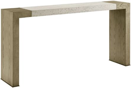 Modern parsons style console table made of figured ash in your choice of Dune or Earth with our exclusive Mineral finished top and metal detail at the base of the legs in a bronze finish.Read More