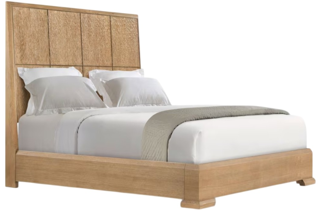 Theodore Alexander Essence panel bed is slender, geometric lines create a tranquil pattern across the hand carved headboard of the Essence US King Bed. At its base is an alluring white oak frame.Read More