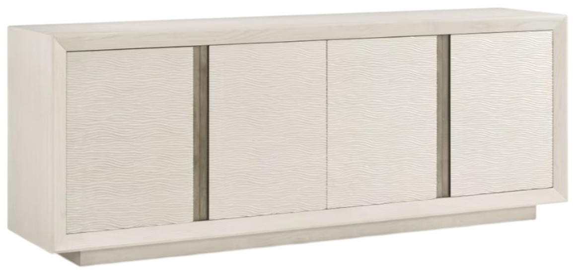 Sleek, geometric forms draw the eye to the textural carved doors and recessed metal accents of the essence media cabinet. This cabinet is both versatile and functional and includes ventilation and openings for electrical components and one adjustable shelf.Read More