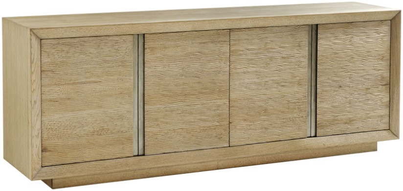 Sleek, geometric forms draw the eye to the textural carved doors and recessed metal accents of the Essence Media Cabinet. This cabinet is both versatile and functional and includes ventilation and openings for electrical components and one adjustable shelf.Read More