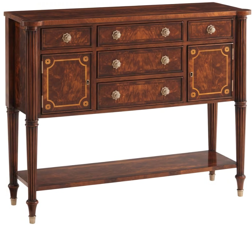 Frequently dust exposed surfaces with a clean, damp natural cloth. Dry the surface with another clean, dry cloth. Infrequently polish your furniture (a few times a year at most) with a non-silicon-base furniture polish made by a reputable manufacturer, taking care to follow the instructions. Bear in mind that one manufacturer’s furniture care products should never be used in combination with another. Product formulations are unique to each manufacturer and are made to blend with another, so using different polishes may cause build-up that can appear cloudy or dull over time, and/or feel sticky to the touch. Always polish or dust with a motion that follows the grain of the wood to avoid scratching the surface, and allow polish to dry completely before replacing any objects on the surface.
