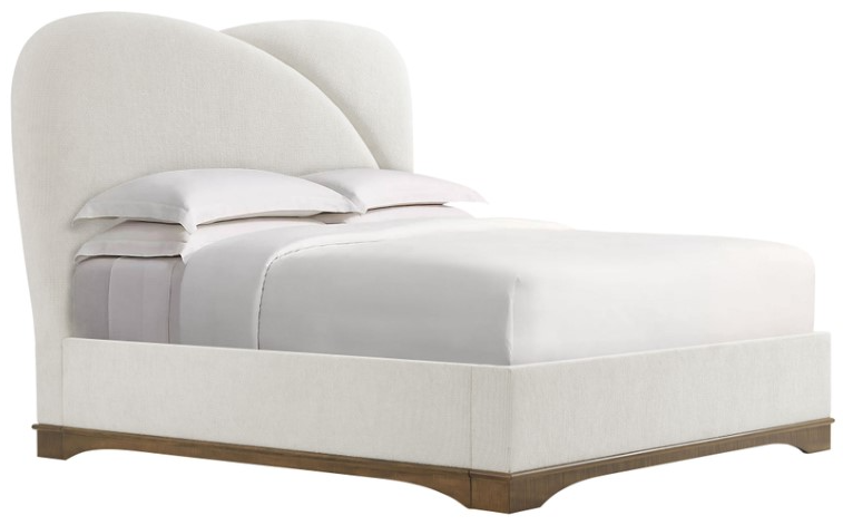 The Origins California King Bed recalls the highly influential Streamline Moderne style with elegant, swooping contours a generously upholstered form. Rests atop a figured sycamore base finished in a choice of Sesame or Landmark. Accepts a box spring.Read More