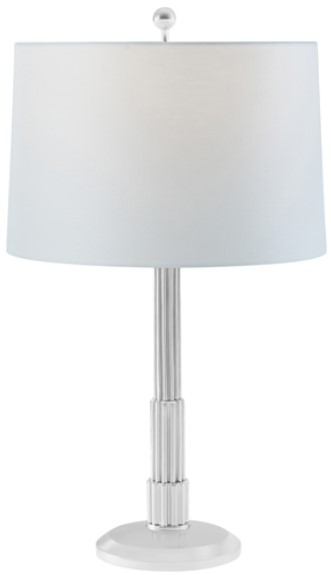 The Theodore Alexander Empire Nickel Plated Brass Table Lamp features a sophisticated design with a sleek nickel-plated brass finish. Its elegant empire-shaped shade and detailed base provide a touch of classic luxury, making it a perfect addition to any refined interior space.Read More