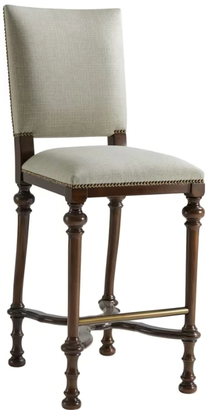 Inspired by William and Mary, the cultivated bar stool compels an air of sophistication through hand carved splayed legs that gently taper below the frame’s luxurious upholstered seat. Shown in brooksby and brass.Read More