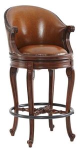 A hand-carved swivel bar stool featuring a padded scoop back, upholstered seat, and elegant scroll arms. Set on carved legs with a verdigris brass footrest, this piece is inspired by an original Louis XV design, offering timeless character and refined comfort.Read More