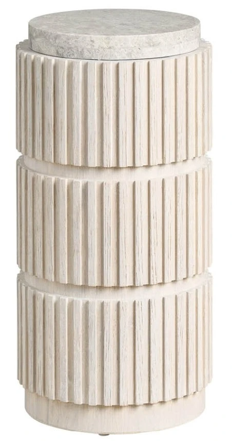 The Carmen Spot Table, a sleek and minimalist design, offers a unique blend of form and function. Its tall, slender silhouette, topped with a smooth stone surface, is perfect for holding a single drink or a small decorative object. The table's distinctive vertical texture adds a touch of elegance.Read More