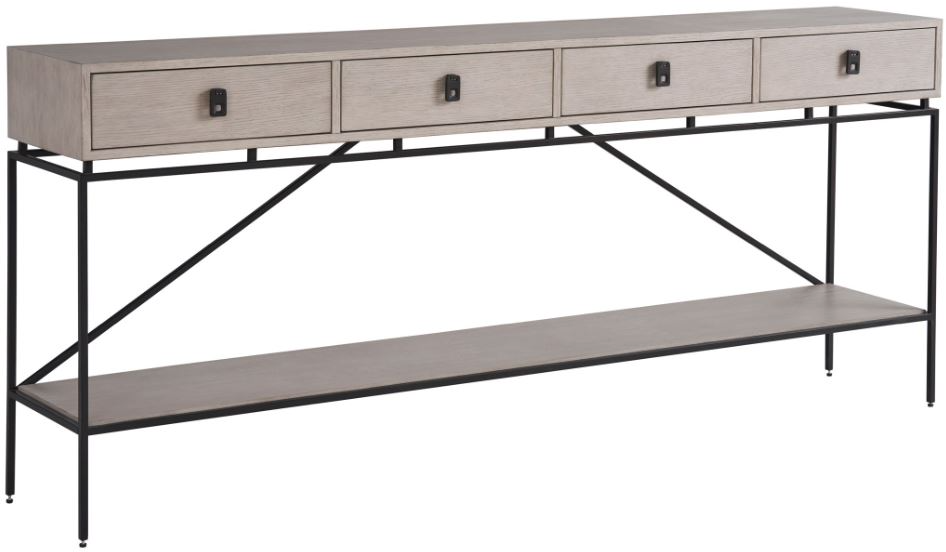 The Barber console stands with poise in its rolling fog finish, its form punctuated by striking metal hardware. Metal legs and detailing infuse the piece with a dynamic interest, while its clean lines introduce a crisp, contemporary twist.Read More