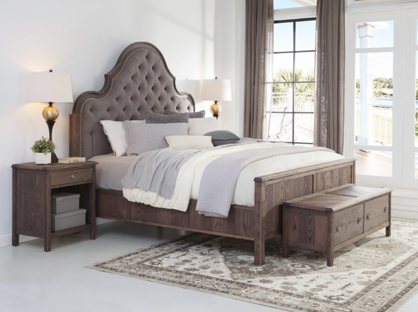 Sleep soundly in the sophistication and luxury of Amador Hill Queen Tufted Upholstered Arch Bed. This queen-size bed flaunts a Retreat White Oak finish creating an elegant and refined look. This beautifully crafted bed brings a handsome touch to your bedroom.Read More