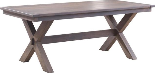 Elevate your dining room with this Dining Table from Cross Trestle Collection. Shown in a wormy maple wood finish, this item itself provides compliments to other furniture surrounding it. Make a bold statement by incorporating this stunning furniture into your home.Read More