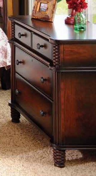 The New Generations Collection is our way of saying that we are proud of the revived emphasis the consumer has in American Craftsmanship. Hand carved antique design accents adorn the beds and armoire. Skillfully rounded, fluted pilasters,‘pineapple’ twisted foot design, and artfully carved molding are details that the industry gave to the far east decades ago because of the belief that “this detail just can’t be done in the USA anymore.” We are proud to change this perception with this Solid Cherry collection featuring a hand glazed lightly distress burnished finish that provides a stunning aged look. Our own solid brass aged hardware makes this reproduction look as if you were walking into an 18th century manor. You will appreciate our handcrafted artistry. The New Generations Collection is our way of showing our USA pride in each piece we make.