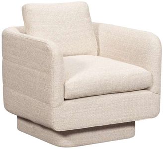 Even relaxing feels more fashionable in the arms of the Evolution swivel chair. Its modern barrel-back design is smaller in scale and complemented by rounded, enveloping arms. Channel-quilted stitch detailing along the outer back creates style-forward appeal while a tall, upholstered plinth base is rounded to echo the chair's shape.Read More