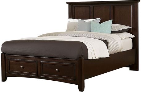 You can have bedroom furniture that is made in the USA with this mansion storage bed. Its versatile style features simple molding and recessed panels on the headboard and framed panels on the two drawers of the low profile footboard for a casual appeal. Perfect for a contemporary to transitional decor, this storage bed will easily update the look of any master bedroom.