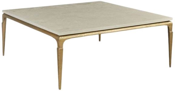 A square Spanish marble top rests over sturdy textured metal legs joined by rounded apron rails. Crafted with meticulous attention to detail, it features a luxurious Spanish marble top complemented by a textured gold base, creating a stunning focal point for any living space.Read More