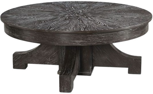 A circular cocktail table with unique base constructed with oak solids and veneer and finished in our Slate hue. The Carter Slate Cocktail Table epitomizes modern sophistication. Crafted with a sleek metal frame and slate tabletop, it exudes contemporary charm. Its clean lines and minimalist design offer versatility.Read More