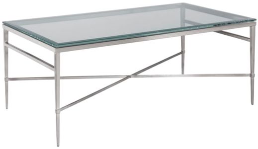 A terrific modern form crafted in metal and finished in a polished nickel. A rectangular beveled glass top rests over four gracefully tapering legs that are joined by a low “X” stretcher. Make a bold statement by incorporating this stunning furniture into your home.Read More