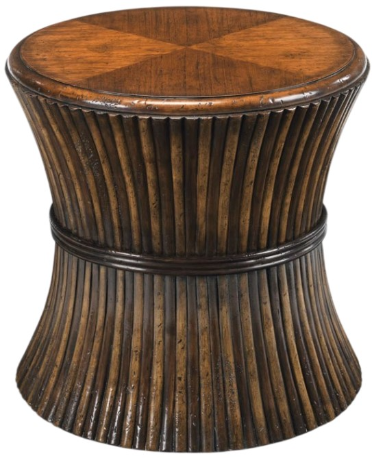 This Drum Table form Woodbridge Furniture is shown in Dark Chateau finish. A handy table with a round top veneered with mindi that rests over a colonnade of unpeeled rattan poles. Make a bold statement by incorporating this stunning furniture into your home.Read More