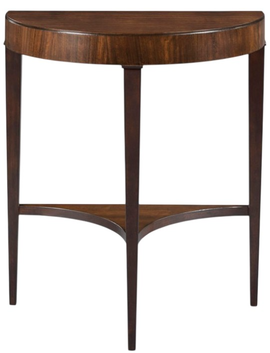 The Demilune hall table has a half-round top that is veneered with Mozambique above a matching apron rail that is elevated by three gracefully tapering posts joined together by a low shelf.Read More