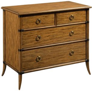 This terrific storage chest is designed in the spirit of English 19th Century regency originals. The rectangular top is veneered with lovely prima vera veneer over four legs turned in a faux bamboo fashion that flank four storage drawers mounted with lovely brass ring pulls.Read More